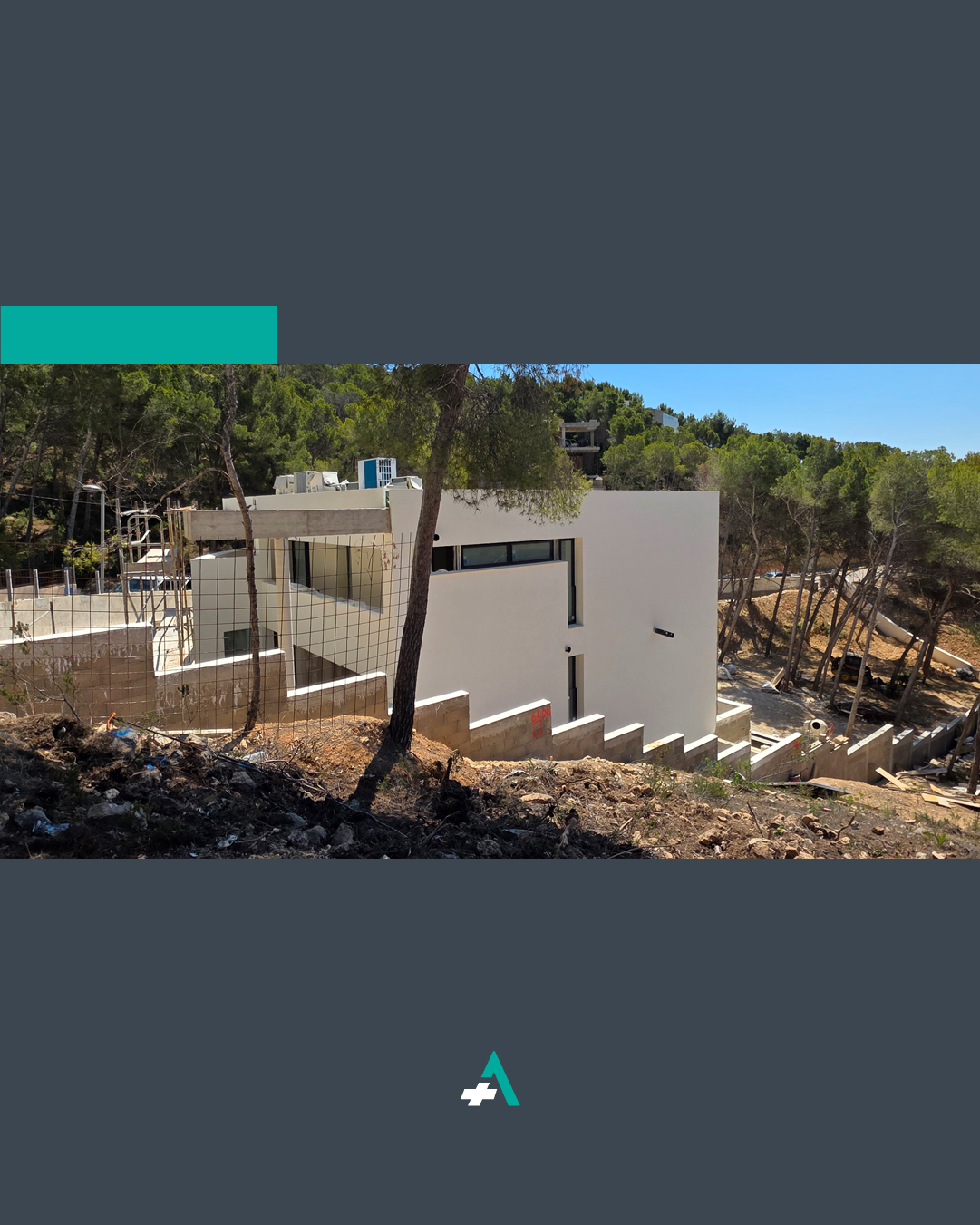 Casa unifamiliar con piscina, un proyecto diseñado por Plus Aurea, en la zona de Biniorella, Andratx. La casa está distribuida en varios niveles, creando espacios amplios y cómodos que se conectan de forma natural con el exterior.