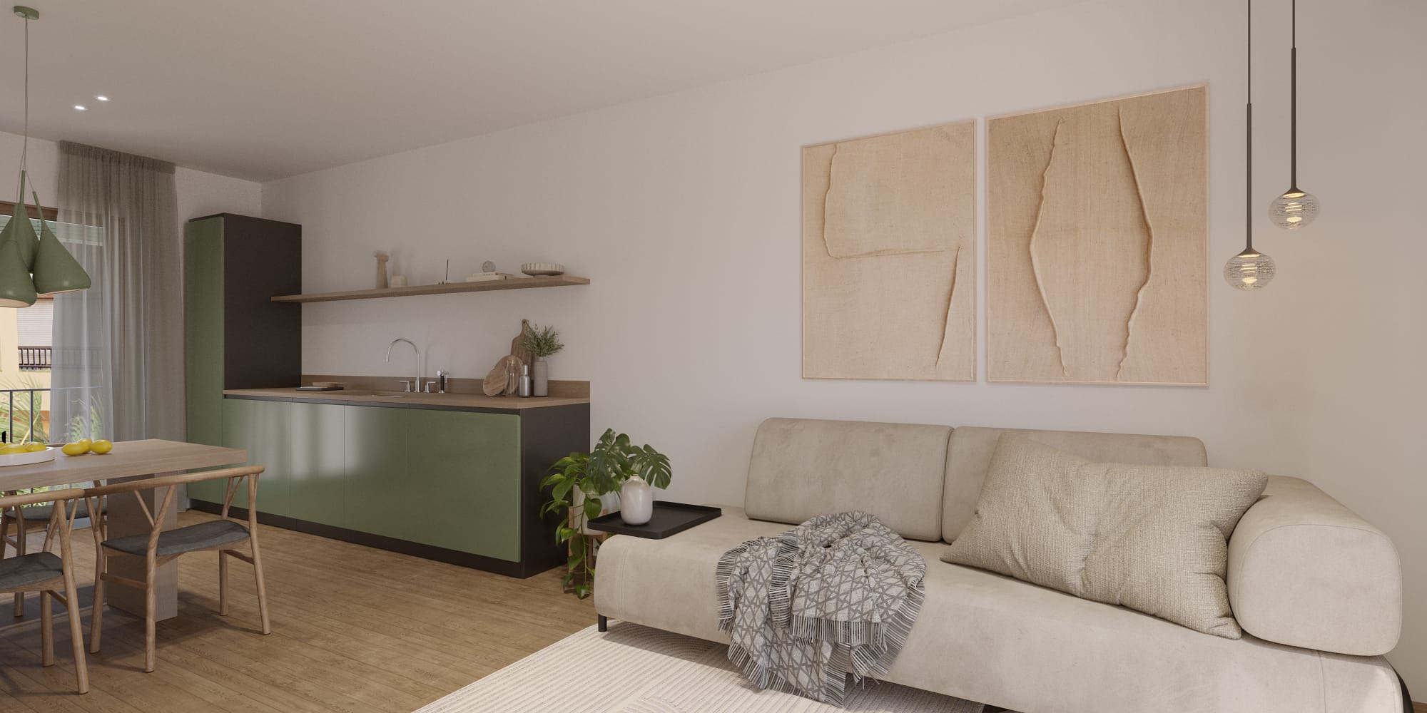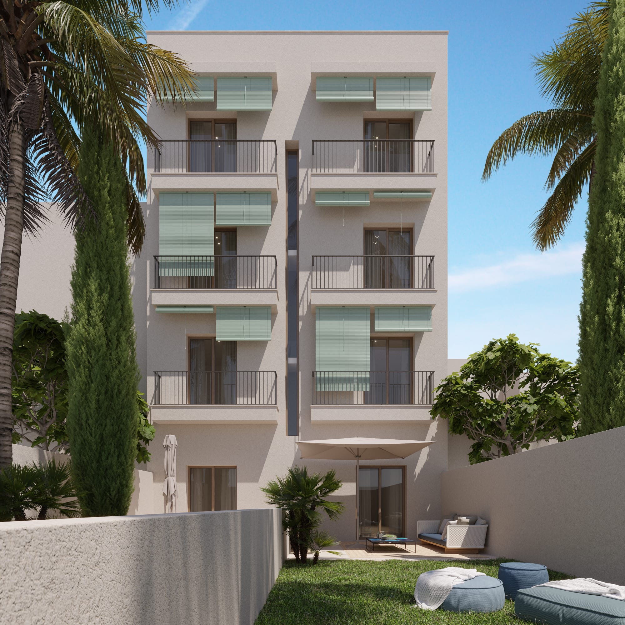 Esta vivienda plurifamiliar con piscinas, se encuentra ubicado en Palma, es una obra de nueva construcción que alberga siete viviendas, cinco de régimen libre y dos de precio limitado (HPL), distribuidas en planta baja, primera, segunda y ático. El diseño, gestionado íntegramente por Plus Aurea, responde a la necesidad de crear espacios funcionales y de alta calidad en una parcela urbana. La organización espacial se articula mediante una estructura mixta de pilares de acero y muros de carga de bloque cerámico, soportada sobre una cimentación por losa de hormigón armado. Los forjados se resuelven con losas macizas de hormigón armado, garantizando la robustez del conjunto.